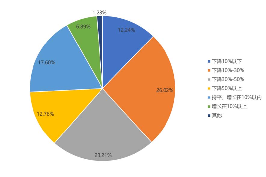 ? ? ??約74%的文化企業預測今年的經營業績同比呈下降趨勢,其中認為下降將超過10%以上的超過百分之六十(其中有12.76%文化企業認為業績下降將超過50%),另外有17.6%文化企業可以持平,6.89%文化企業認為增長在10%以上??偟膩砜矗绊懨娲?,產生了一定程度的悲觀心態。