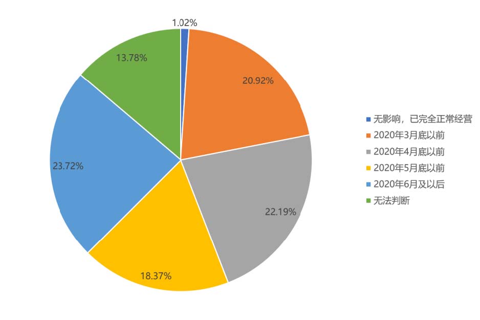 ? ? ??約79%的文化企業認為2020年3月底以前文化企業都不能恢復到正常營業狀態;大約60%的文化企業認為在6月份之前可以正?;謴蜕a經營;23.72%的文化企業認為要在6月以后才能恢復。對于大多數文化企業來說,由于有幾個月時間不能正常營業,2020年將會是非常艱難的一年。